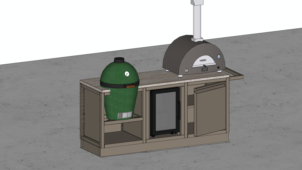Naast het kookgedeelte beschikt de buitenkeuken ook over een ingebouwde koeling. Perfect om drankjes koel te houden tijdens warme zomerdagen of om ingrediënten binnen handbereik te bewaren tijdens het koken. Hierdoor is er werkelijk aan alles gedacht om lange zomeravonden met familie en vrienden door te brengen.